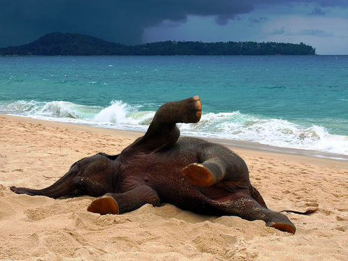 Okay, pretty sure this is my new best friend. He was nose deep in the water and now he’s rolling around in the sand like a puppy dog. cutest elephant ever. MDH