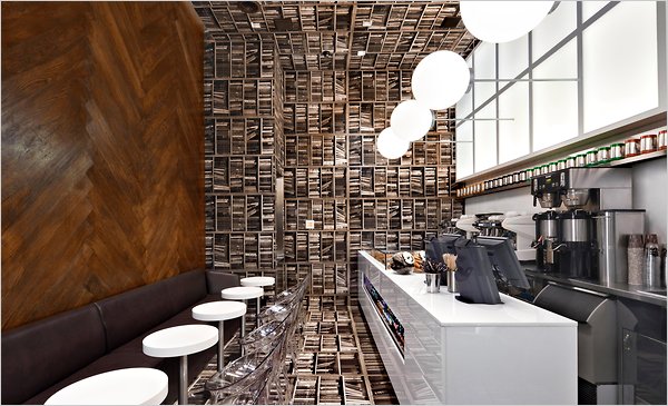 evanrose: The logical conclusion of Gunnar’s book problem, but sideways. (via Currents - Rooms - A Coffee Bar That Makes You Feel Tipsy - NYTimes.com)